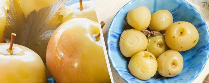Inlagda eller fermenterade äpplen är ett mycket gott mellanmål med stora fördelar för kroppen. För att förbereda den hälls frukten med vört och väntar på jäsning. Färdiga frukter smakar surt sött, med en liten brödnot, liknande kvass eller cider. När du biter i dem verkar de kolsyrade och smälter behagligt i munnen. Du kan ändra proportionerna mellan socker och salt för att göra en sötare eller saltare rätt.