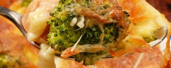 Förbered en hälsosam gryta där broccoli harmoniskt kombineras med röd fisk, och ägg- och gräddfyllning gör rätten mör och saftig.