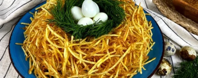 Originalsallad ”Grouse’s Nest” eller ”Quail’s Nest” är en idealisk variant av vad man ska förbereda sig för en semester. Receptet är okomplicerat och tillgängligt för alla. Och resultatet är så gott att ingen kommer att vägra påfyllning.
