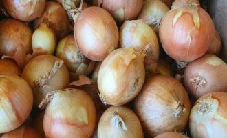 Tärna löken fint och stek i en panna med olja i 5-6 minuter tills den är gyllene. Tillsätt till den totala rödbetablandningen. Häll sedan i vinägern.