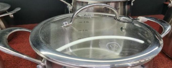 Om handtaget är löstagbart kan kastrullerna staplas och täckas med hushållspapper eller servetter för att skydda beläggningen. Om handtaget inte är löstagbart är det bättre att förvara dem upprätt i särskilda ställningar eller på krokar, men locken bör fortfarande förvaras separat upp och ner på en annan plats.