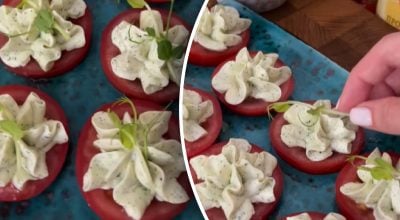 Ett recept på ett mycket gott tomatsnacks. Länk kopierad Snabb aptitretare som kommer att bli bordets stjärna / Collage: My, foto: skärmdumpar från videon